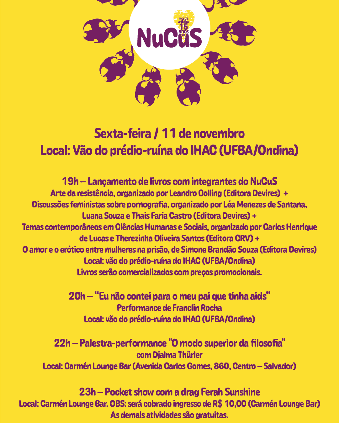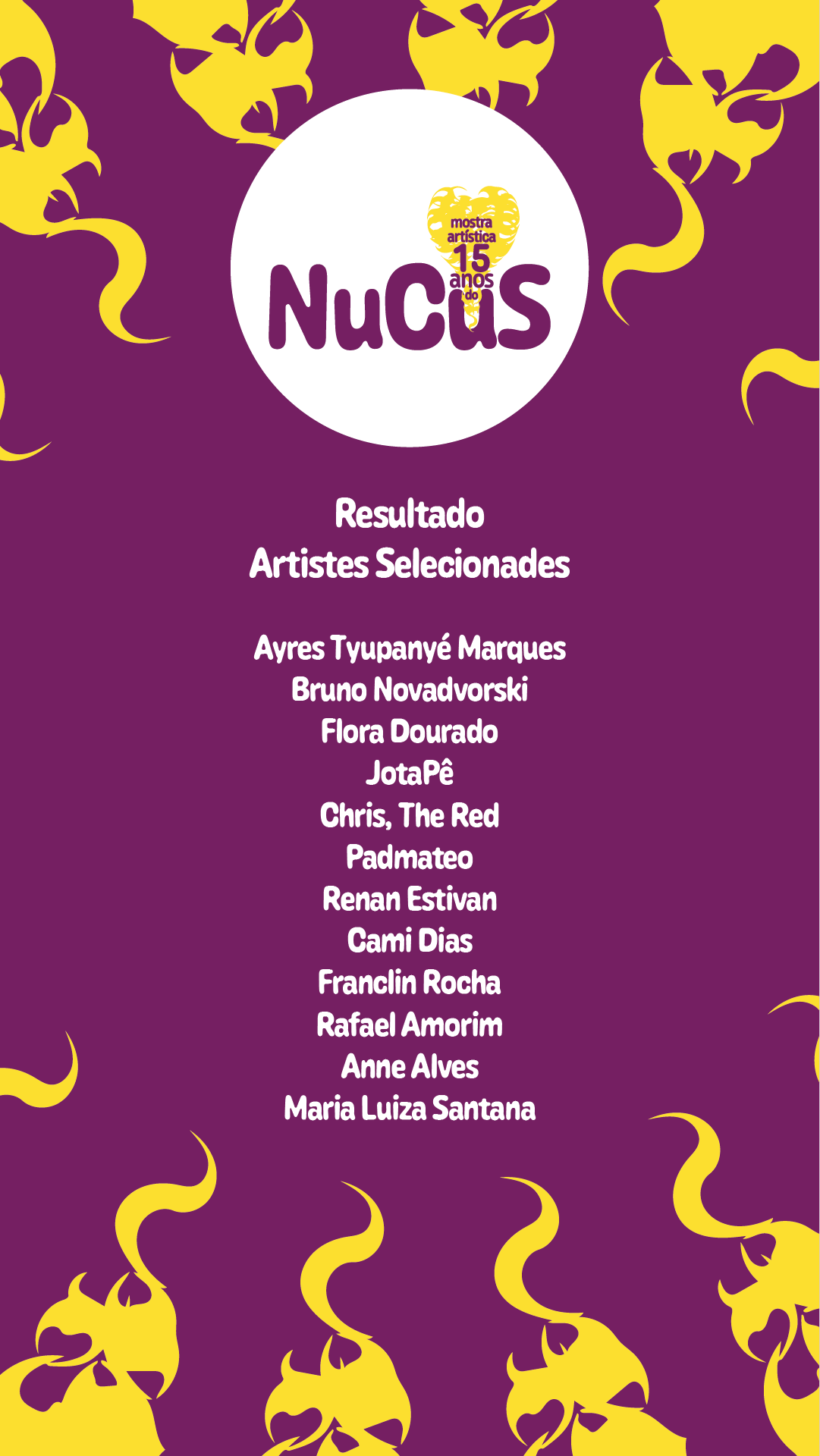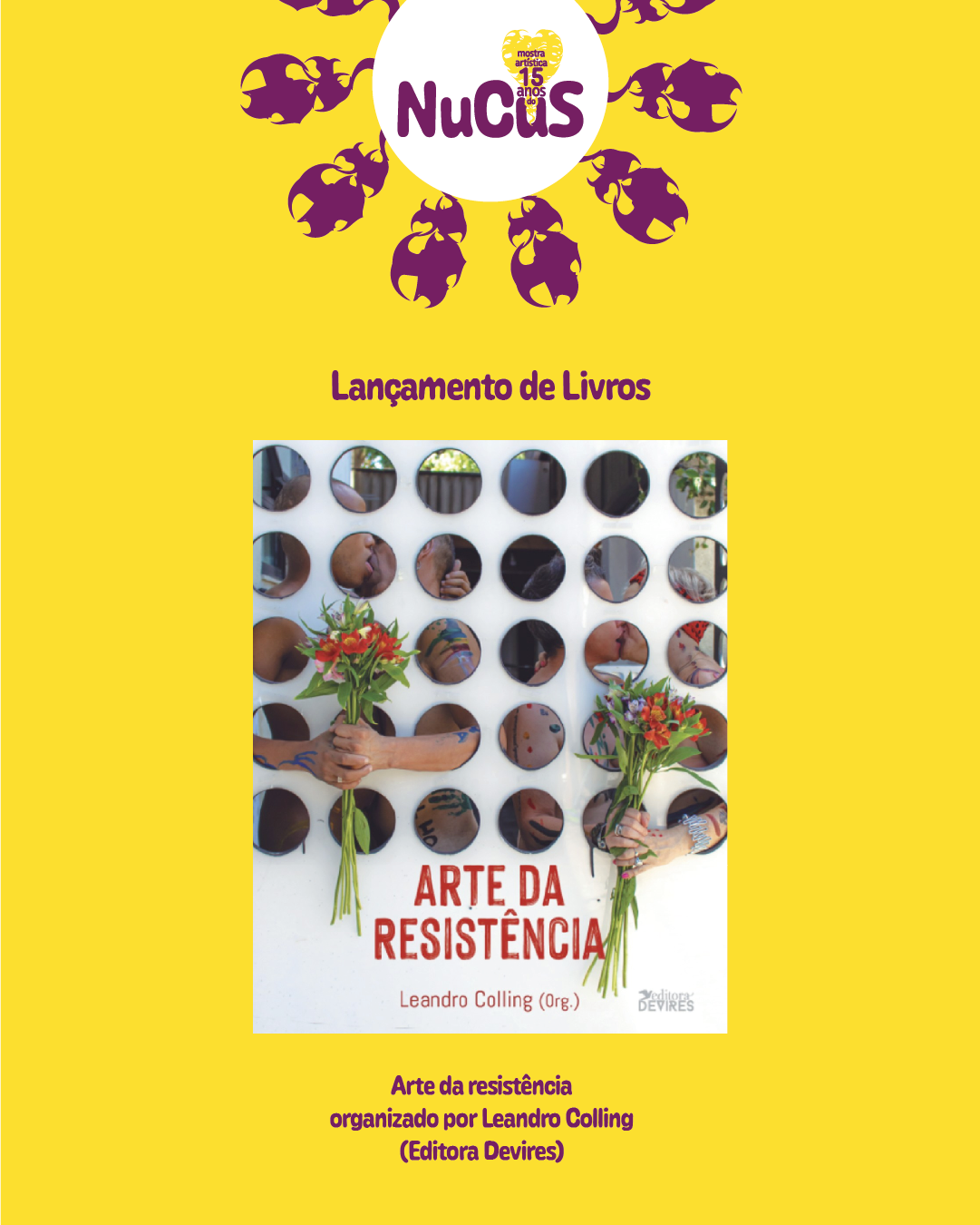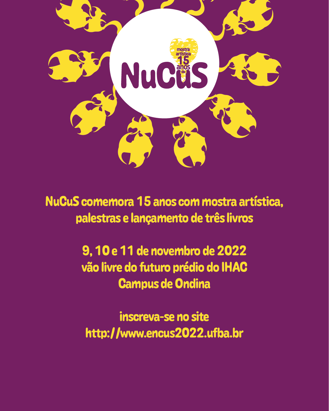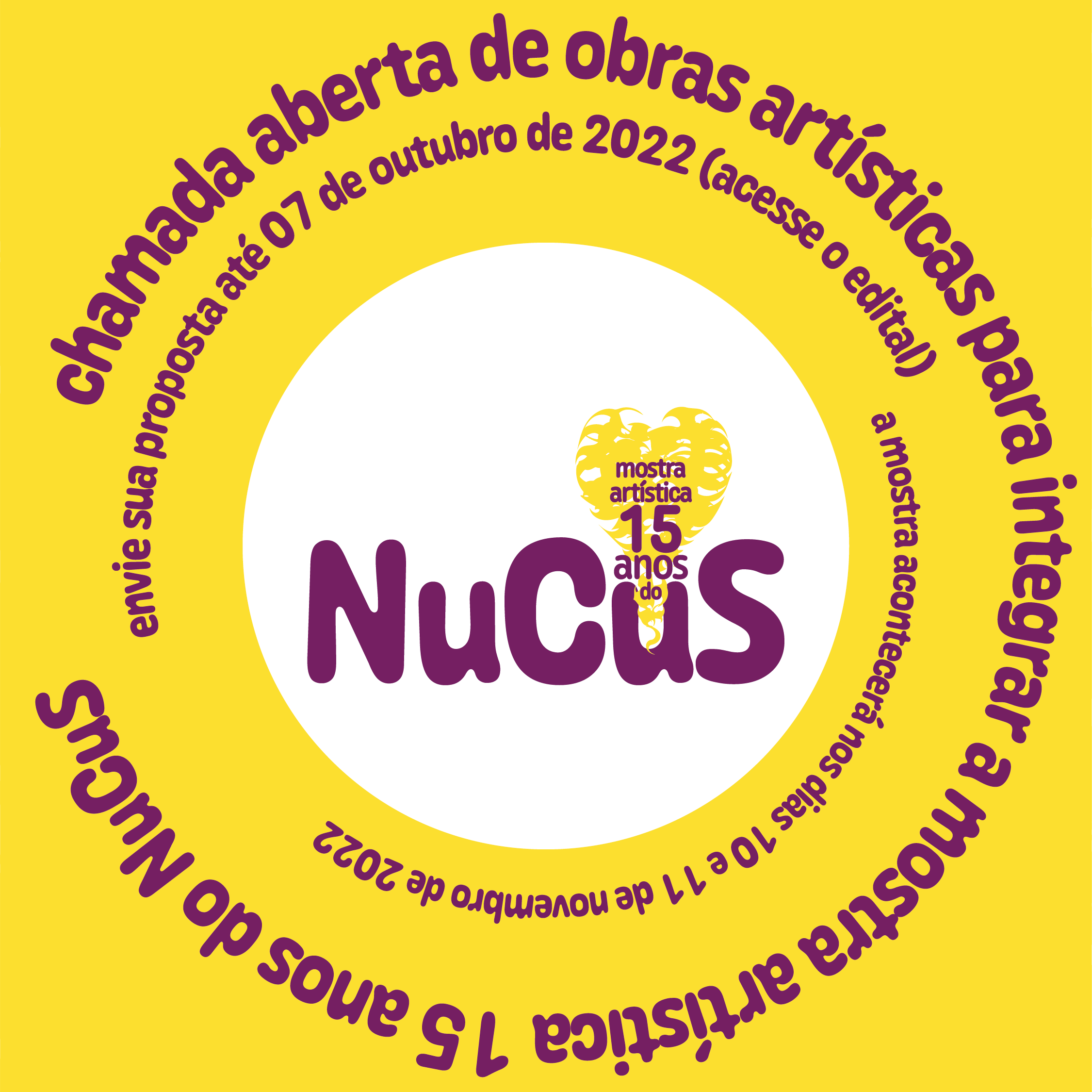 Criação da marca da Mostra Artística 15 anos do NuCus e imagems promocionais para mídias sociais.