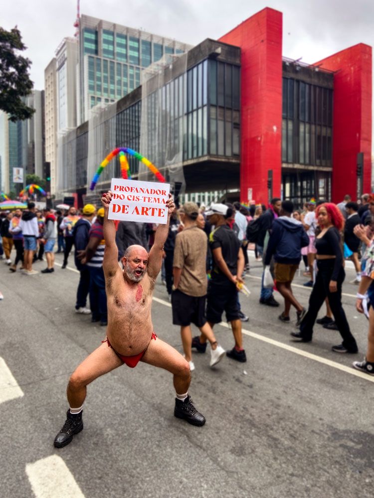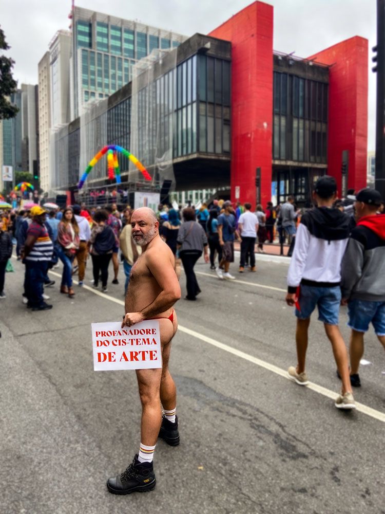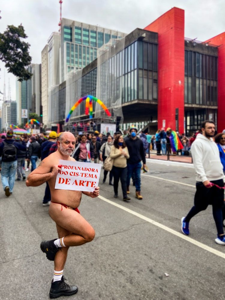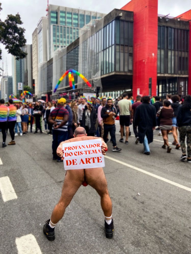 Ação performática realizada na avenida Paulista durante a parada do orgulho de 2022.