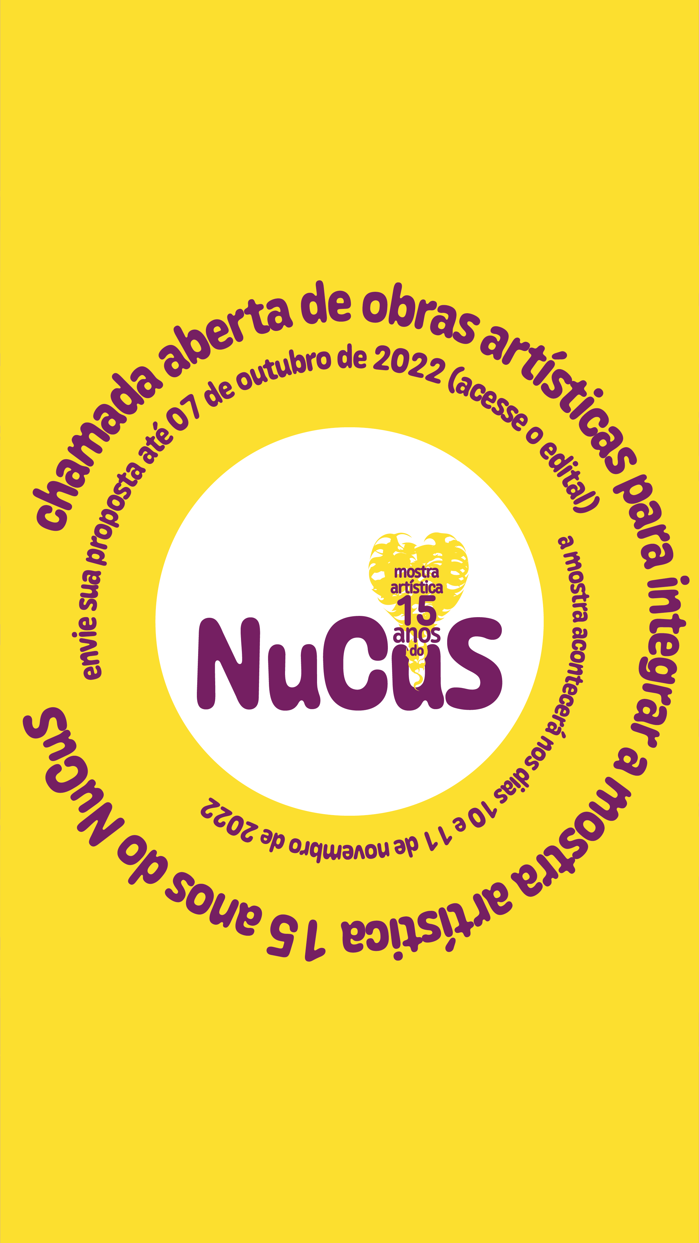 Criação da marca da Mostra Artística 15 anos do NuCus e imagems promocionais para mídias sociais.