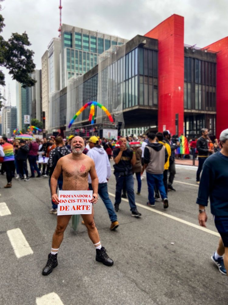 Ação performática realizada na avenida Paulista durante a parada do orgulho de 2022.